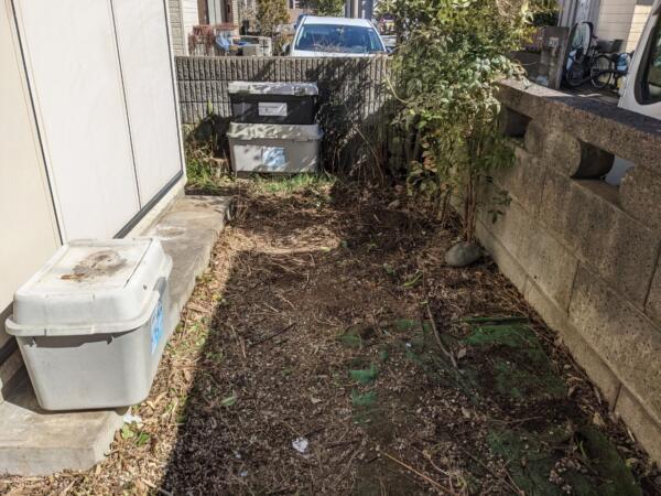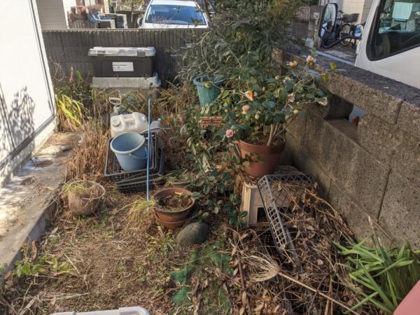 埼玉県春日部市にお住まいの方からご依頼を承けた片付け作業です。今回の作業先は庭先のみとのことですが、ご依頼主の方が身体を壊してしまってからお手入れやお片付けが出来なくなってしまい、生前にきれいな状態に戻したいという希望を抱き今回のご依頼に踏み切ってくださったそうです。植木の撤去や雑草の手入れをするとなると結構な労力が必要となります。そんな時こそ当センターの出番です。