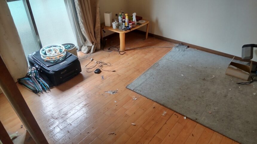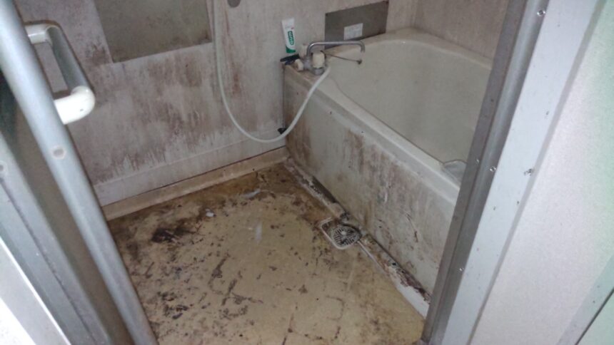 埼玉県加須市にお住まいの方からご依頼を承けた遺品整理作業です。今回の作業先でも先にご遺族の方々で遺品整理を行い、ある程度お片付けや仕分けが済んでいる状態でした。こちらのご依頼の場合、床の汚れやお風呂場といった水回り付近の汚れが目立ち、ご遺族の方々もどうにかしようと手を尽くしたそうなのですが、残念ながら難しかったようです。そんな時には私たちプロの出番です。