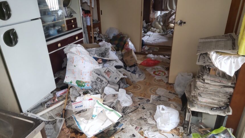 東京都清瀬市にお住まいの方からご依頼を承けた遺品整理作業です。今回の作業先では古新聞や生活雑貨・日用品が散乱していて床が見えない…所謂足の踏み場がないような状態でした。こういった状況のお部屋では、物の下に鋭利なもの…画鋲や刃物といったものが落ちているケースも少なくはありませんので、一般の方が安易に踏み入るのは少々危険です。弊社はプロ集団ですので、こういった状態のお部屋であっても一つ一つ丁寧に仕分け作業を行わせて頂きます。